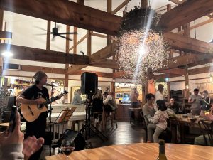 そしてディナーをアビちゃんのロッジでご馳走になり、その後、「近くで知り合いがライブをするから一緒に行こうよ!」と誘ってくれたので、雪道を5分くらい歩いて「椛 Momiji」と言うゲストハウスに連れてきてもらいました。